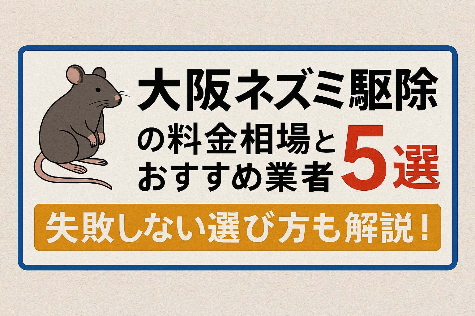 「天井裏からカサカサ音がする」「壁に小さな穴が空いている」「黒いフンのようなものが落ちている」――。 こんな異変に気づいたら、それはネズミ被害のサインかもしれません。 大阪市内では、特に古い住宅や飲食店を中心にネズミの被害が増えており、放置すると健康リスクや建物の劣化につながる恐れがあります。 とはいえ、いざ駆除業者に相談しようと思っても、 「どこに頼めばいいの?」 「費用はどのくらい?」 「高額請求されない?」 …と不安が尽きませんよね。 そこで本記事では、大阪市で評判の良いネズミ駆除業者を5社厳選して ...
