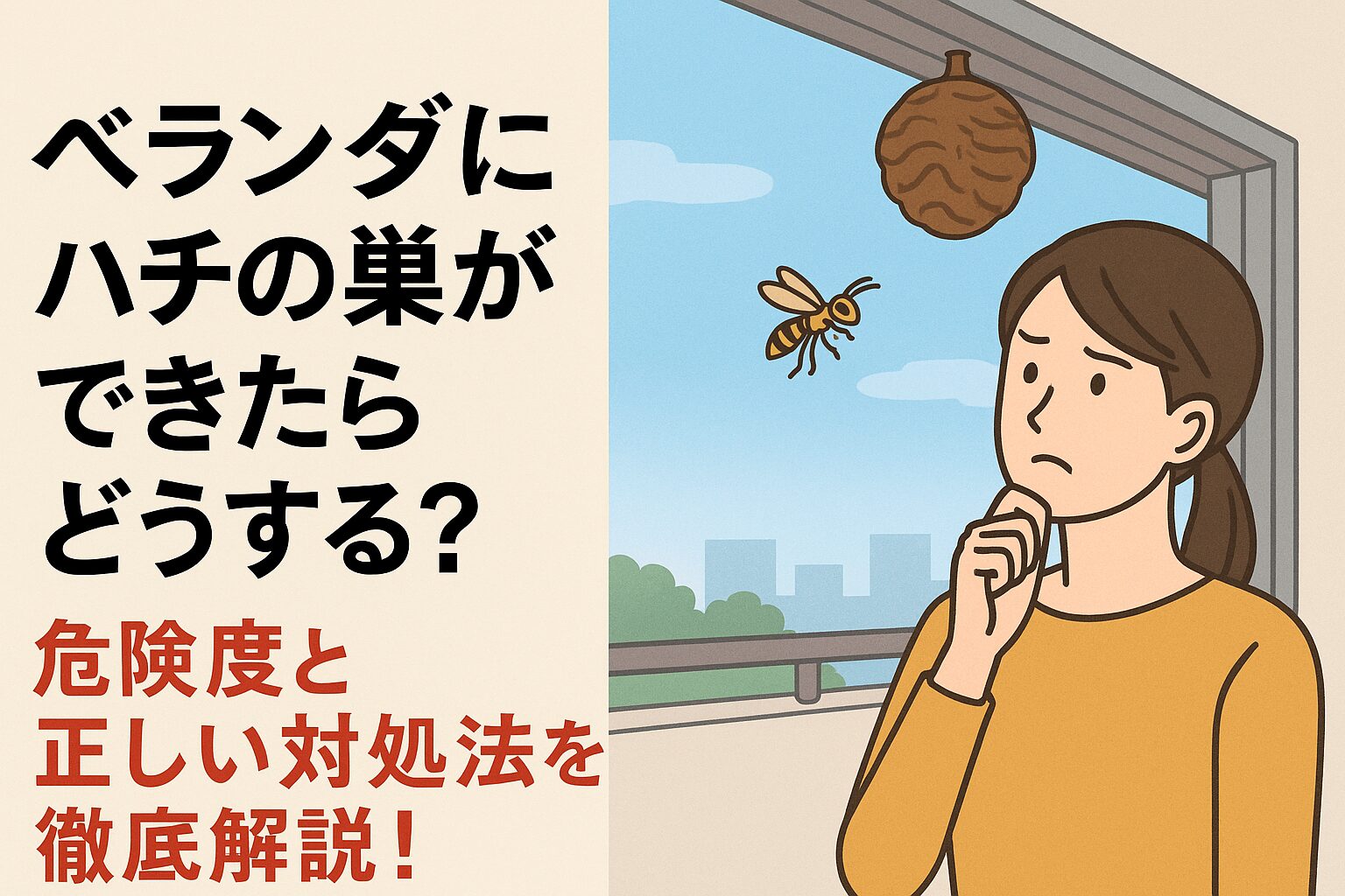 「ベランダにハチが飛んでる…」「同じ場所を出入りしてるけど、もしかして巣がある?」 そんな違和感や不安を抱えてこの記事にたどり着いた方は少なくないと思います。 実際、春から夏にかけてはハチの巣作りが活発になり、室外機の裏や軒下、植木鉢の陰などに巣を作るケースが増えます。 そのまま放置してしまうと、巣がどんどん大きくなり、刺されるリスクも高くなってしまいます。 この記事では、ベランダにハチの巣ができたときにやってはいけないNG行動や、自宅でできる応急処置・予防法、プロに相談すべき判断基準などをわかりやすく解 ...