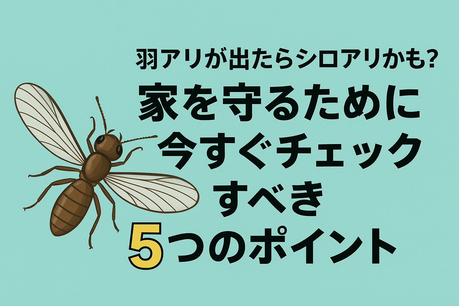 「最近、家の近くで羽アリを見かけた…これってシロアリかも?」 と不安になっていませんか。 シロアリは、家の内部を静かに食い荒らし、放置すると床が抜けたり家が傾いたりといった深刻な被害を引き起こします。 特に、50代〜70代のご夫婦で長年住んでいるお宅は注意が必要です。 この記事では、今すぐできるシロアリ被害のセルフチェック5つのポイントをわかりやすくご紹介。 羽アリと黒アリの見分け方や、慌てずに取るべき初期対応、そして専門業者に相談すべきタイミングまで詳しく解説しています。 大切なご自宅を守るため、早めの ...
