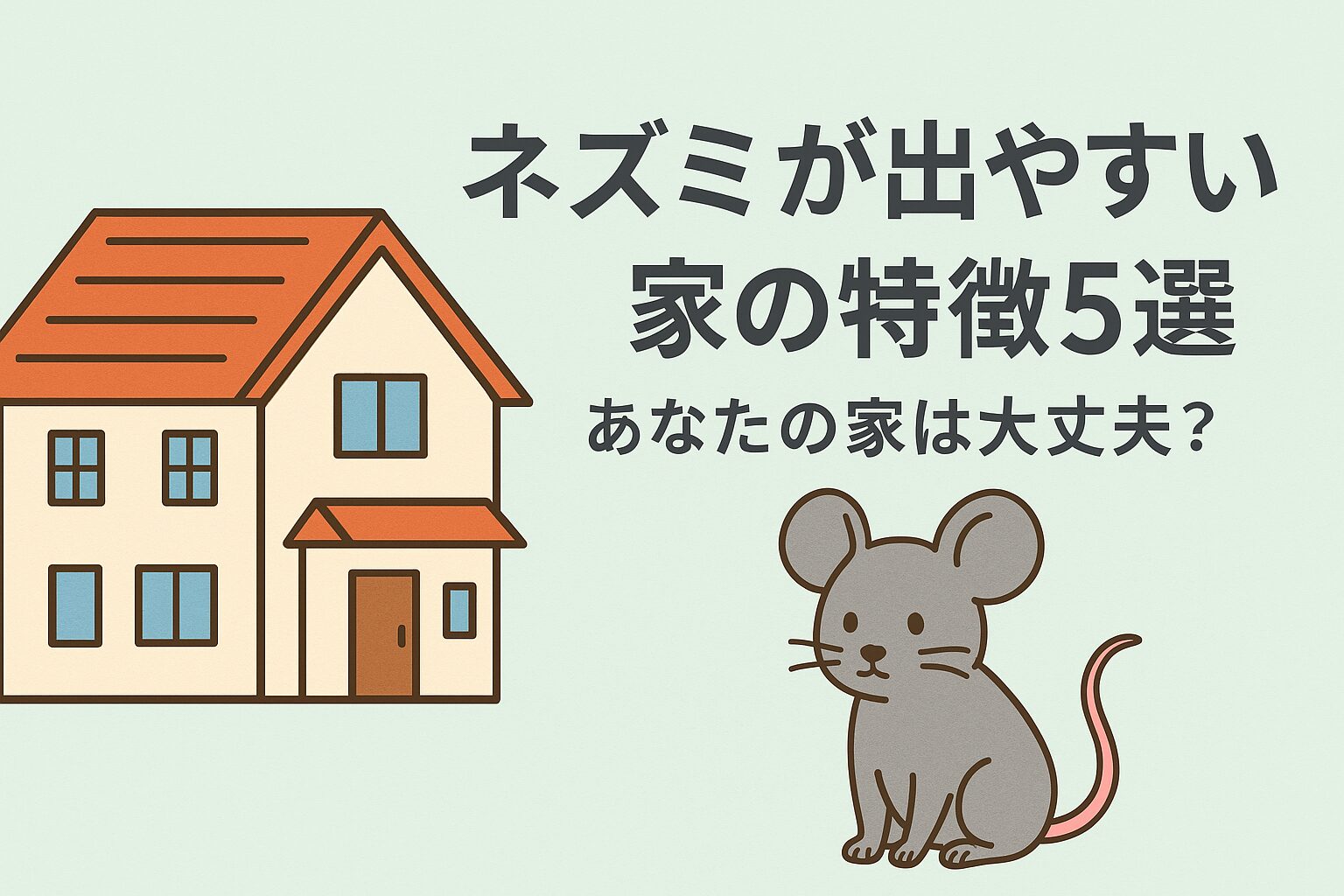 「夜中に天井からカサカサ音がする…」「キッチンに黒いフンのようなものがあった」 そんな小さな異変に気づいたとき、ふと頭をよぎるのが「もしかして、ネズミ…?」という不安ではないでしょうか。 実はネズミは、どこにでも現れるわけではありません。 出やすい家には共通の特徴があり、侵入のリスクは家の構造や生活習慣によって高まります。 本記事では、「ネズミが出やすい家」の5つの特徴をはじめ、自宅でできるセルフチェックの方法、そして今日から始められる簡単な予防対策まで、初心者の方にもわかりやすく解説します。 「まさかう ...