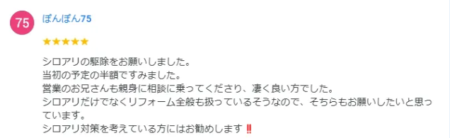 →「シロアリの種類や被害状況を詳しく説明してくれて信頼できた。」